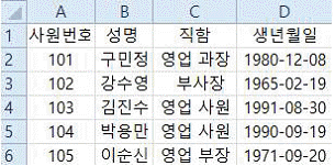 | 27. 다음 중 아래 시트에 대한 각 수식의 결과값이 나머지 셋과 다른 것은?