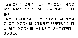 | 46. 아래의 글상자 안 ㉠과 ㉡에 해당하는 소매업 변천이론으로 옳은 것은?