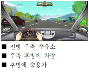 | 25. 고속도로에서 운전 중인 다음 상황에서 가장 안전한 운전 방법 2가지는?