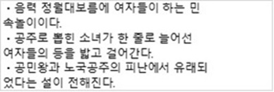 | 34. 강릉단오제의 행사내용으로 옳은 것은?